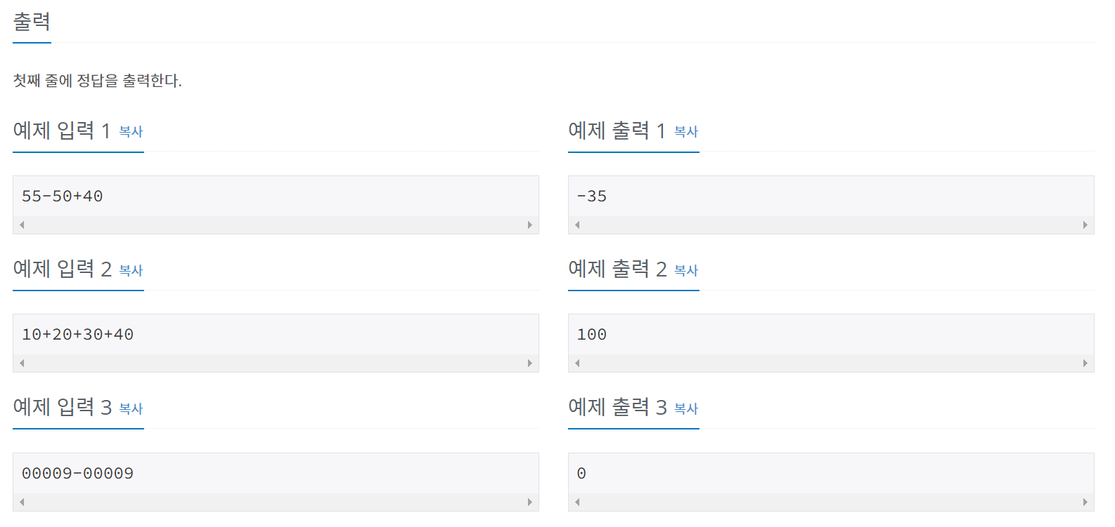 - 이후에 괄호가 쳐져 있어서 안의 수들이 모두 - 취급을 받는 것이 가장 최소인 것을 알게 됐다. 만약 - 괄호 안의 - 를 만나게 되면 두 번째 -가 나오기 전까지의 괄호를 닫아준다는 식으로 생각해보면, 굉장히 간단해진다.