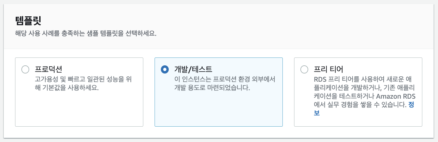 RDS 를 통해 Database를 만들다보면, 이렇게 템플릿을 선택하는 란이 있는데 특별한 차이가 있는 것이 아니라, 템플릿에 따라서 스토리지(Storage)의 범위가 자동으로 결정된다.