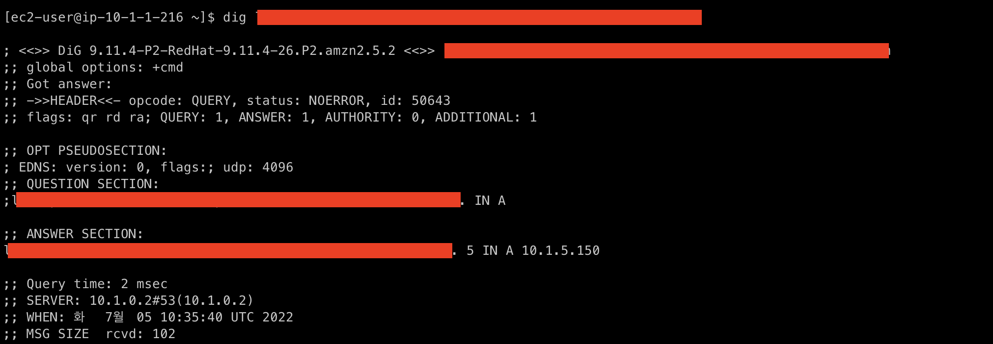 RDS database(Read replica 아님!) 의 '작업(Action)'에서 '재부팅(Rebooting)'을 누른 뒤, '장애 조치로 재부팅하시겠습니까? (Reboot with Failover?)' 란에 체크를 해준 뒤 재부팅시킨다. 재부팅이 완료되면, dig 명령어로 다시 한 번 RDS database의 엔드포인트를 입력해본다.