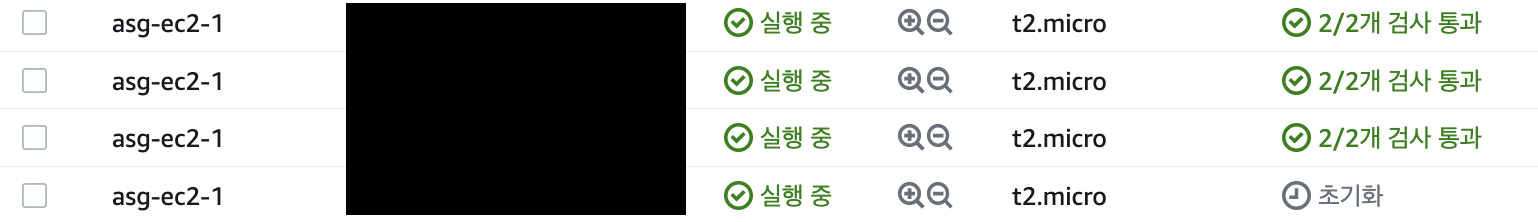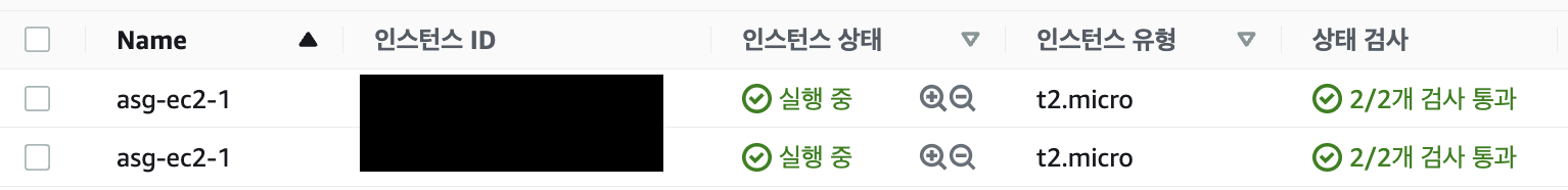 - 인스턴스 리스트에서 "asg-ec2"라는 이름을 가진 인스턴스 2개가 생성된 것을 볼 수 있다.