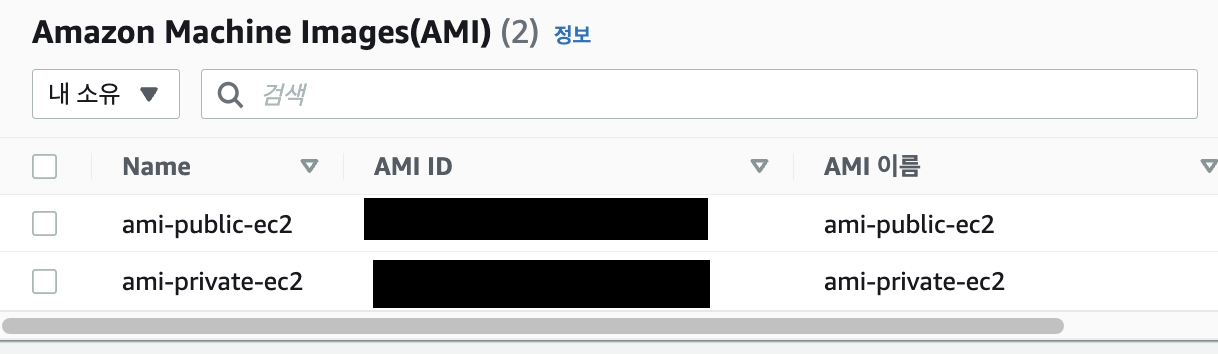 그렇게 이미지를 생성한 뒤, EC2 서비스에서 '이미지'의 'AMI'를 눌러보면, 잘 생성된 것을 확인할 수 있다.