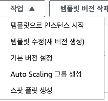 Launch Template을 만들고 난 뒤, 만들어진 Launch Template을 선택해보면, "작업(Actions)"에 다양한 항목들이 존재한다. 각 항목들의 의미를 살펴보자