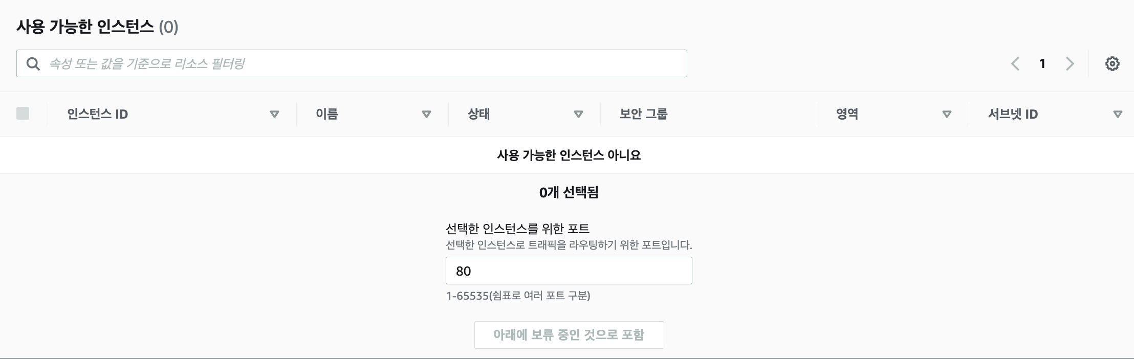그리고 여기서는 대상 그룹에 어떠한 인스턴스도 포함시키지 않는다. 이후의 글에서 다루겠지만 해당 대상 그룹(Target Group)은 Auto scaling 그룹에 연결되는 ALB에 Target group이기 때문에, Auto scaling으로 생성되는 인스턴스들이 이 그룹에 자동으로 등록되기 때문에 어떠한 인스턴스도 포함시키지 않는다.