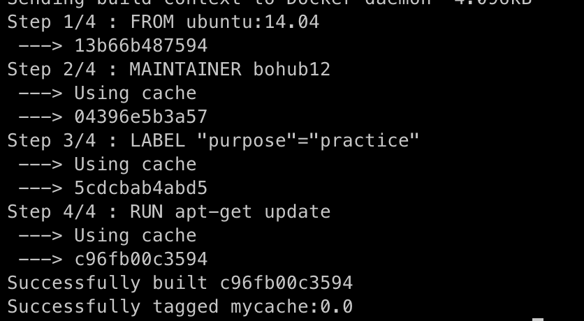 하지만 캐시가 필요없는 경우도 있다. 예로 Dockerfile에 "RUN git clond '..'" 이라는 명령어가 있는데, 깃허브 저장소에서 변경이 있었는데도 캐시를 사용하게 되면 변경사항이 Dockerfile로 생성된 이미지에 적용되지 않는다. 캐시를 사용하지 않으려면 "--no-cache" 옵션을 추가한다. 아래의 명령어 참고.