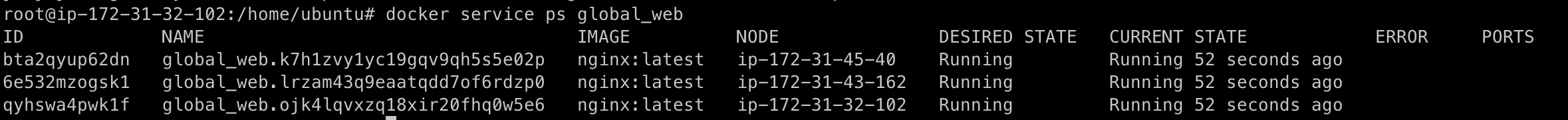 $ docker service create --name global_web \