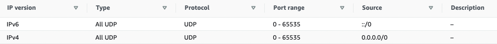 AWS EC2 instance로 실험할 때에는, security group에서 UDP 포트를 열어줘야 앞서 말한 worker2 노드에서 nginx 컨테이너로 접근 가능하다. EC2 instance (worker1 노드를 포함하는 인스턴스의 security group)