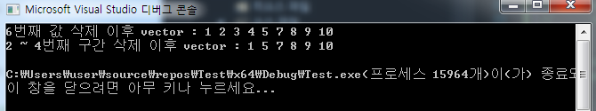 cout << "2 ~ 4번째 구간 삭제 이후 vector : ";